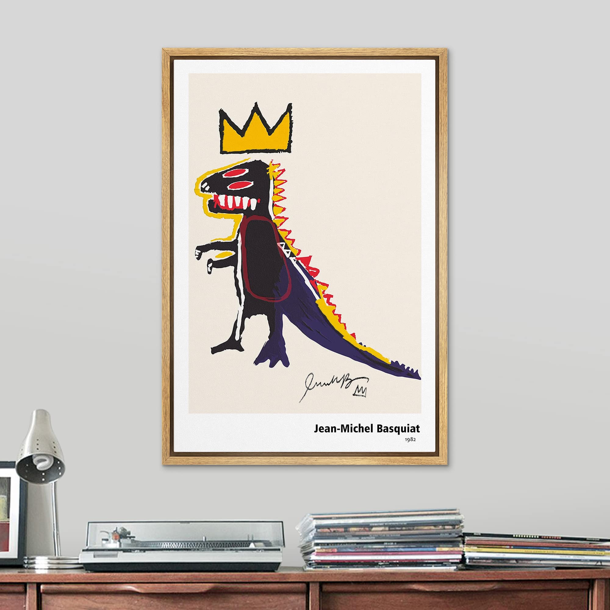Amazon Com Signleader Framed Canvas Print Wall Art Jean Michel Basquiat Dinosaur King Animals Fantasy Illustrations Fine Art Rustic Scenic Relax Calm Colorful For Living Room Bedroom Office 24 X36 Natural Posters Prints